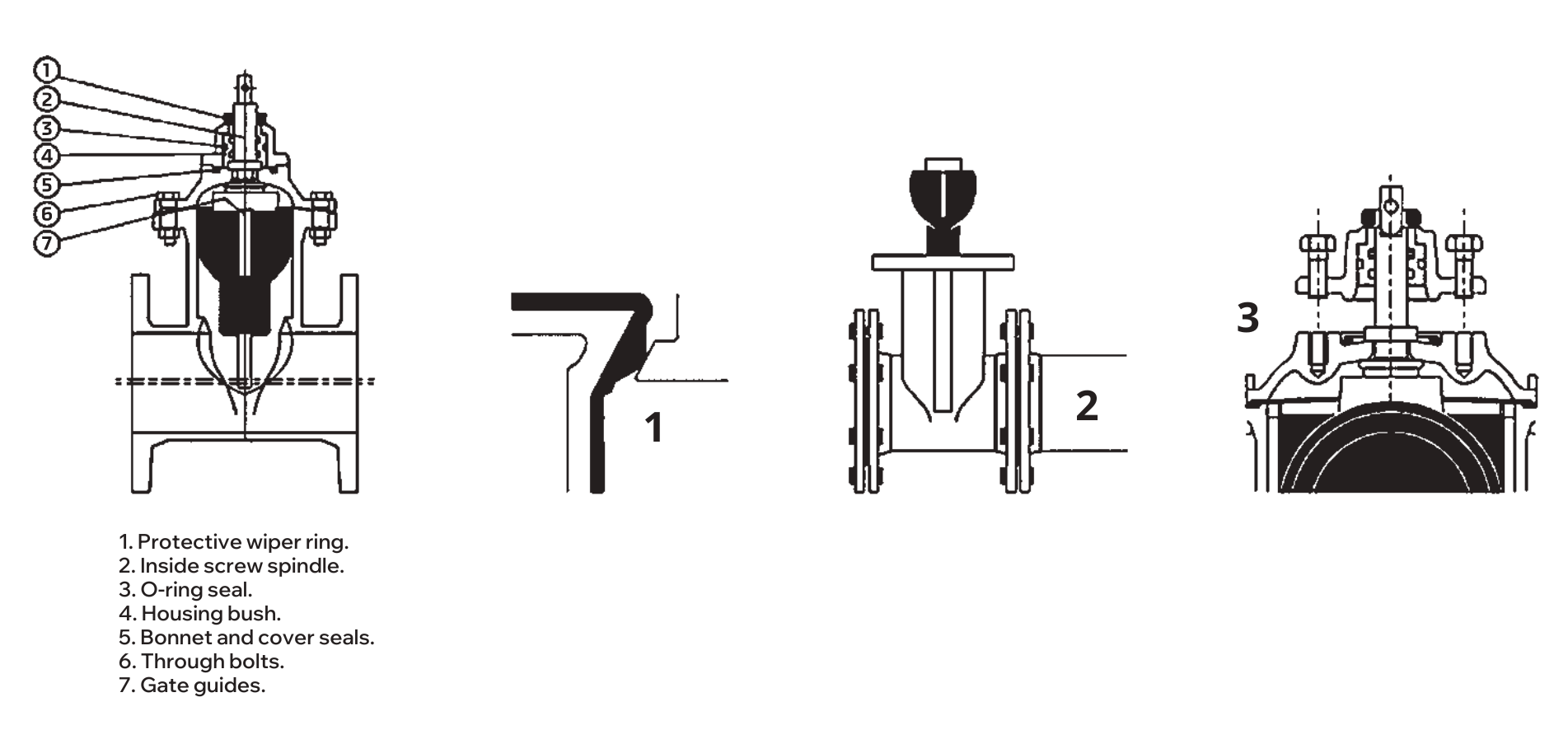 Seating: Uniform contact between body and gate at every point ensures even compression of the rubber, guaranteeing a complete seal. The profile of the sealing surfaces is designed to eliminate wear on the seat faces as the gate closes. The sealing angle is constant and there is no sliding contact between faces in contact, eliminating any shearing, tearing or wearing of the rubber seal. The resilient seal accommodates body distortion resulting from pressure or pipe stresses, and offers drop-tight seal over the whole range of pressures.